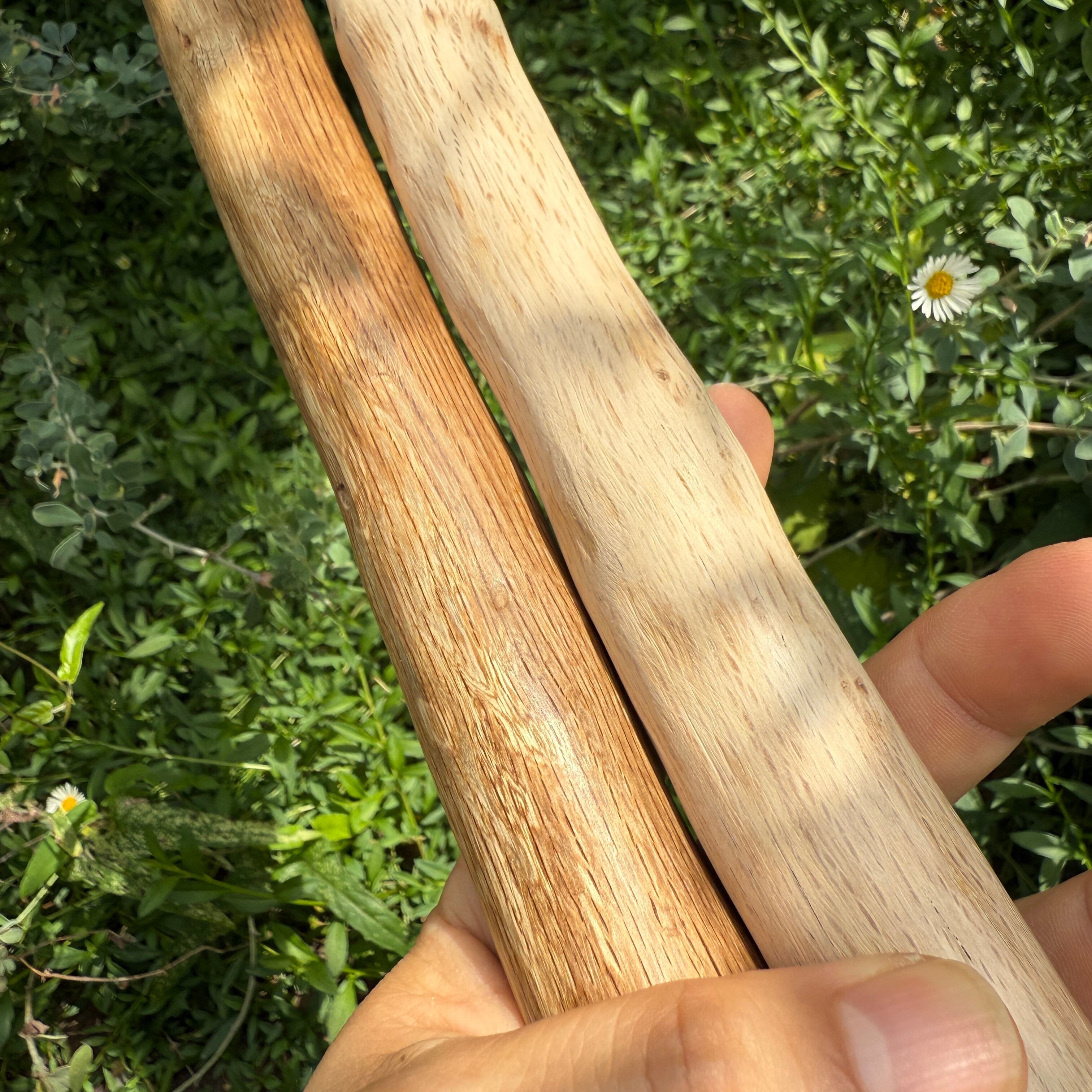 『天然の枝100%、無塗装で化学物質0%。職人が一本一本丁寧にツルツルに磨き上げました』