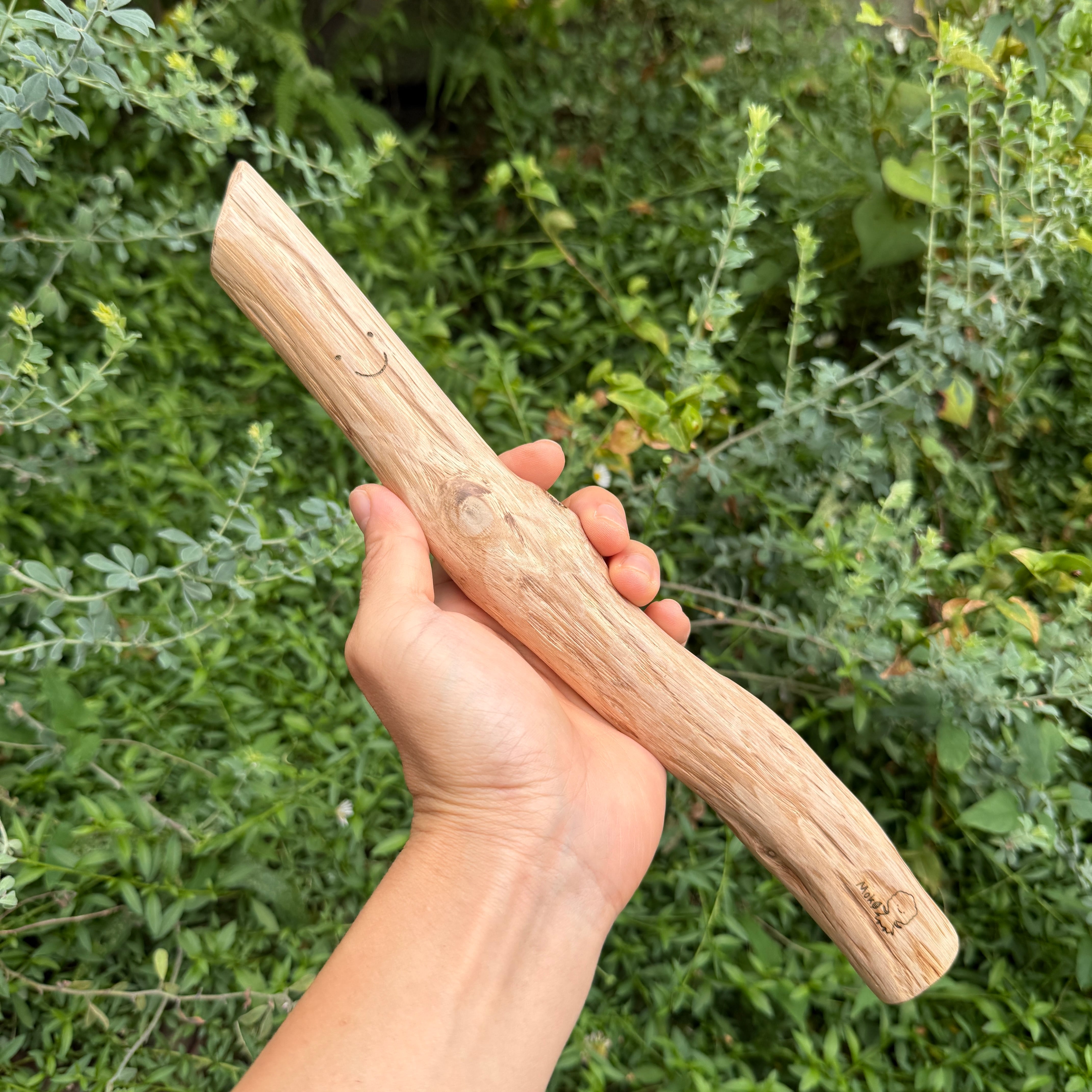 『天然の枝100%、無塗装で化学物質0%。職人が一本一本丁寧にツルツルに磨き上げました』